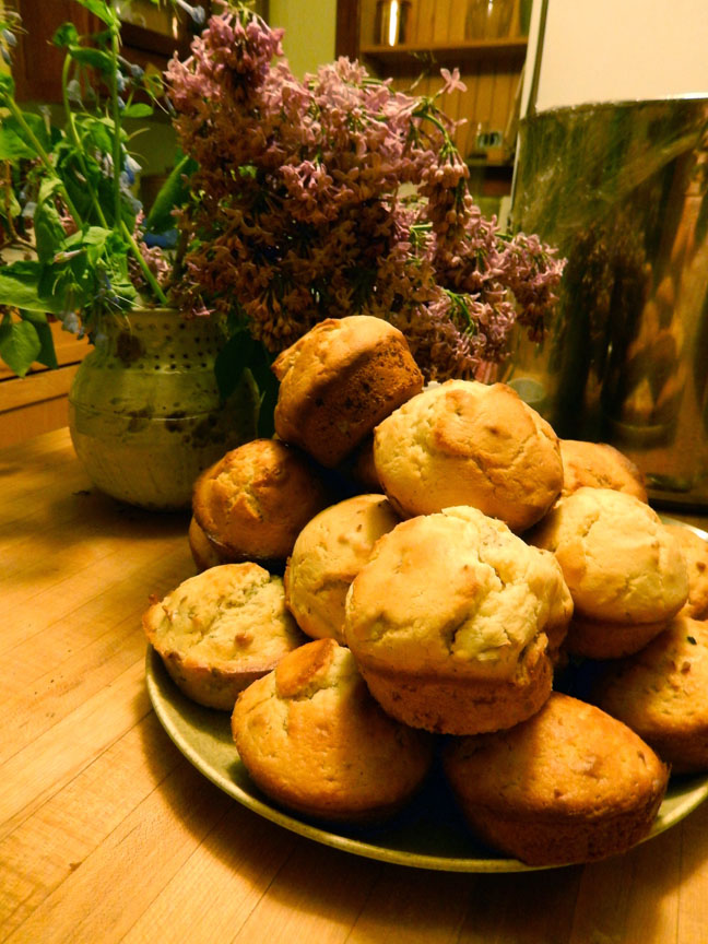 When we got back we made lilac muffins. The recipe can be found here. We added a bit of vanilla extract.